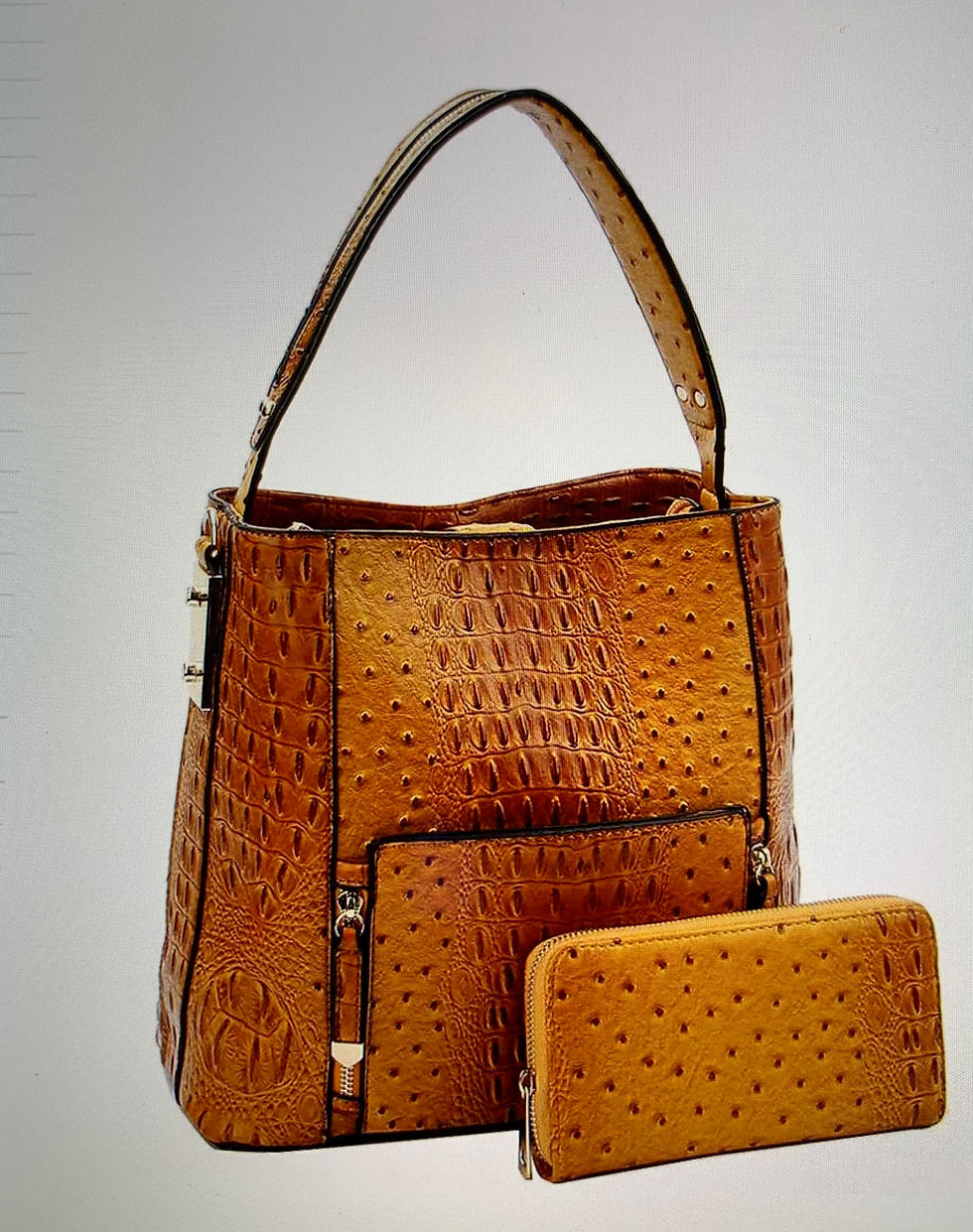 2 IN 1 Ostrich Satchel w/Matching Wallet